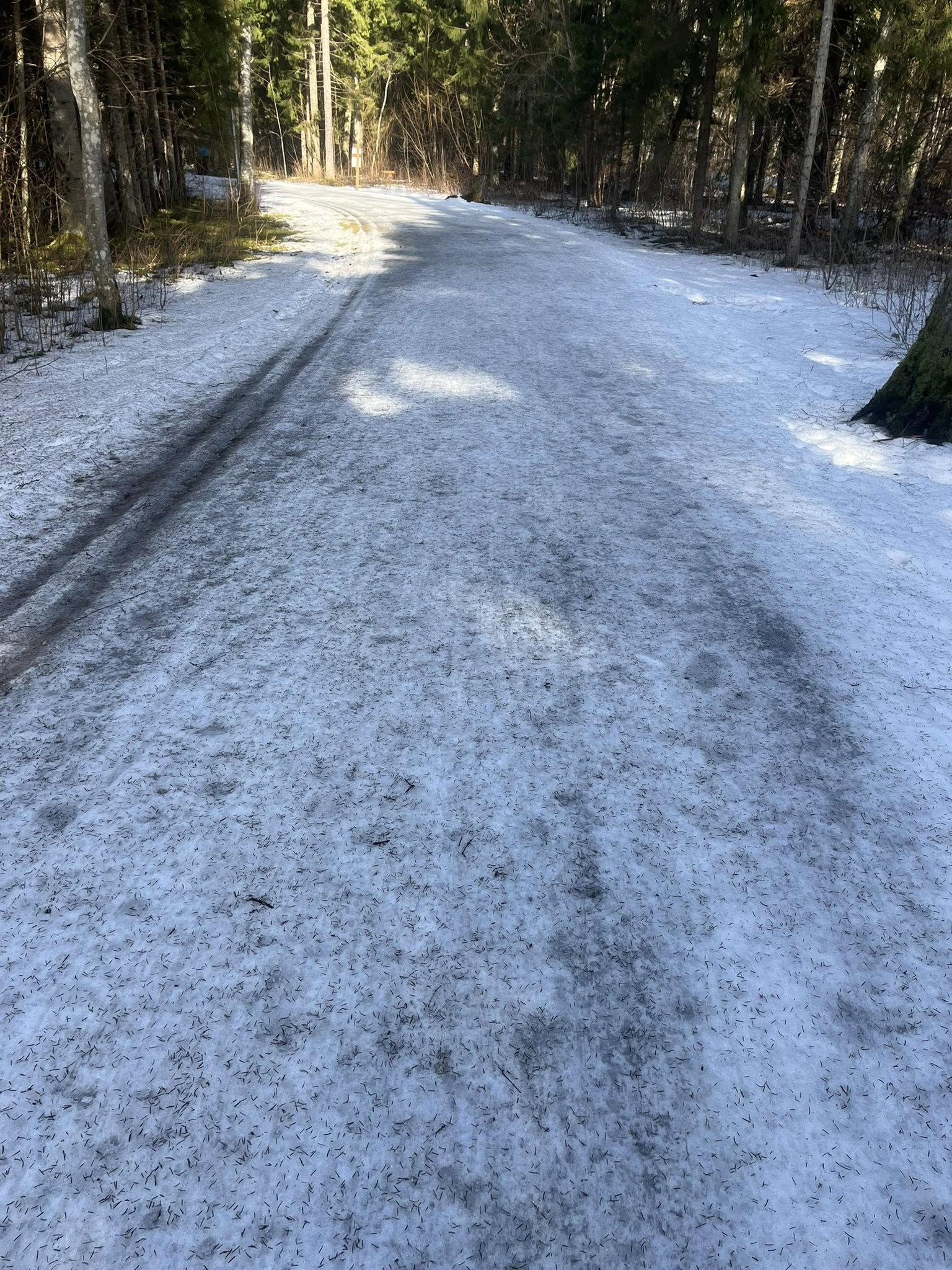 Sisuliselt kolm nädalat kestnud soojalaine on rada hoogsalt sulatanud. Jah, on kohti, kus rajapõhi on endiselt ideaalses seisus, kuid selgi on väga palju kuuseokkaid peal. Samas on sulanud ja jäiseid kohti niivõrd palju, et neid ei hakka ka taastama.